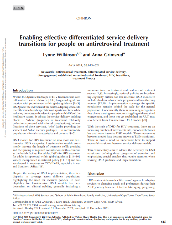 Clients often highlight the advantages of having one appointment for all conditions. This approach can also help reduce stigma. As one client explained: “When we are accessing care at this clinic, we do not hear any rumours outside that disgrace us... we just come here and receive our drugs [and] then off we go, we don’t hear any hearsay.”